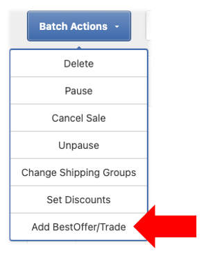 - Once all of your desired items are selected, click the Batch Actions Button and select "Add Best Offer/Trade"